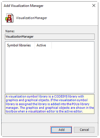 Si apre la finestra di dialogo «Add Visualization Manager».