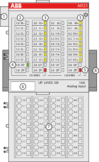1 LED verde per visualizzare lo stato della tensione di alimentazione di processo UP