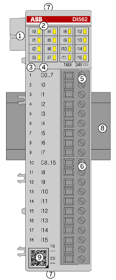 16 ingressi digitali 24 V DC / 24 V AC (I0 ... I15) in 2 gruppi