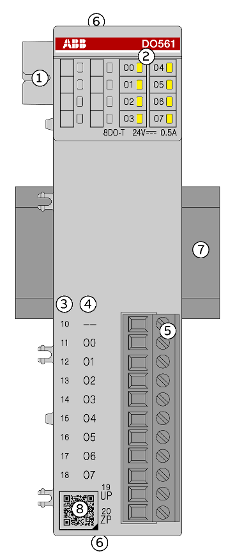 8 uscite digitali 24 V CC (O0 ... O7) in 1 gruppo