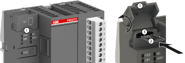 Aprire il coperchio dello slot della micro memory card ruotandolo verso l'alto.