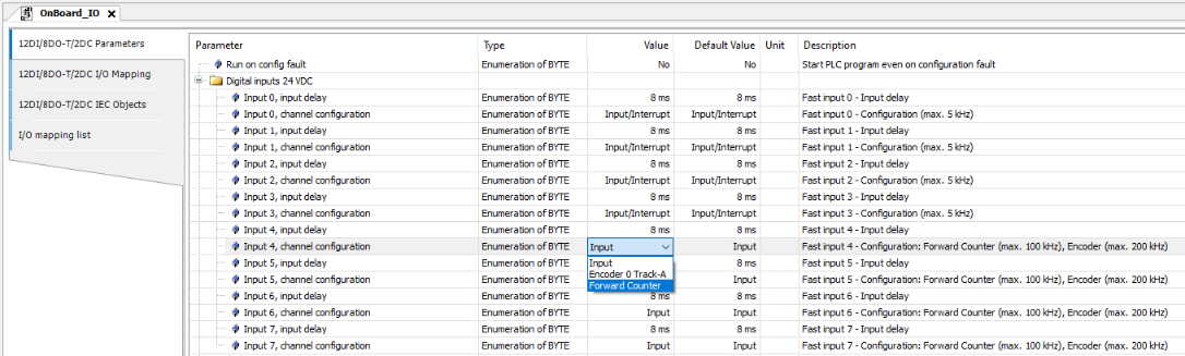 È possibile utilizzare fino a 2 contatori in avanti con un massimo di 5 kHz, mentre gli altri ingressi possono essere utilizzati per altri scopi. |