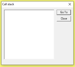 You can run this command when the simulation mode stops at a breakpoint. You will be given a dialog box with a list of the POU Call Stack.